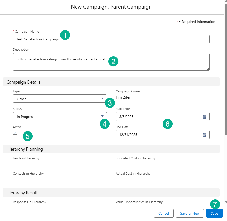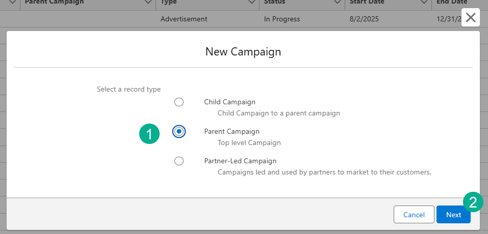 (1) Select a Parent Campaign.