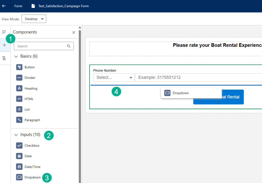 (3) Drag the Dropdown input type.