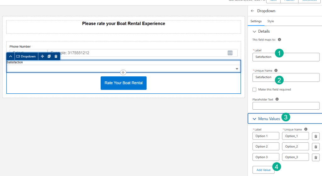 (2) Select the Satisfaction field from the form.