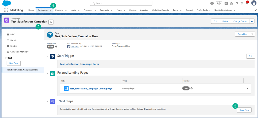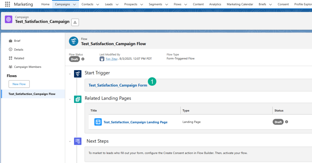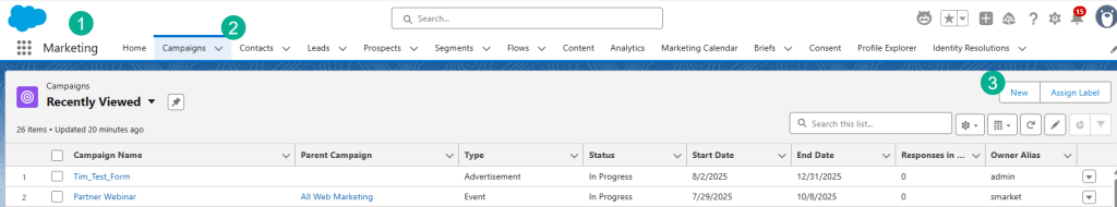 (1) Navigate back to the Marketing App and select the Campaign Tab.