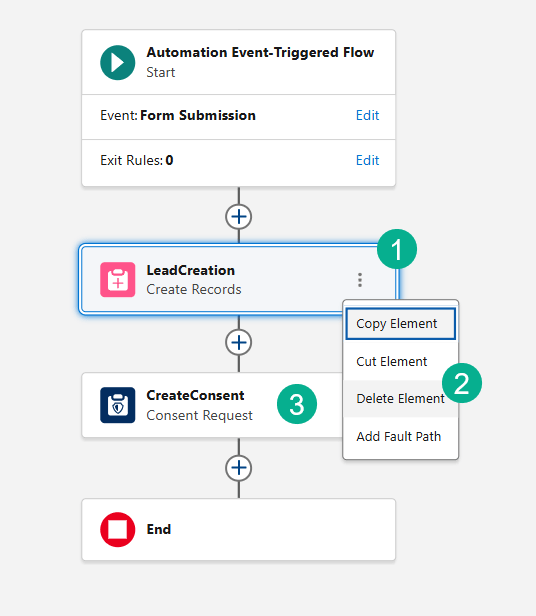 (1) Select the three dots by the LeadCreation and CreateConsent activities.