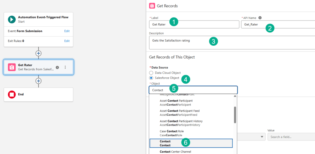(4) Select the Contact from the Get Rater activity.
