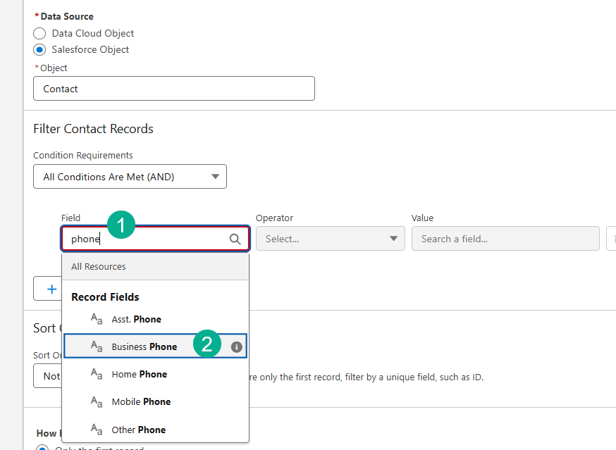 (4) Select the Phone Number field.