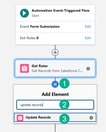 (1) Click on the plus sign after the Get Rater activity.