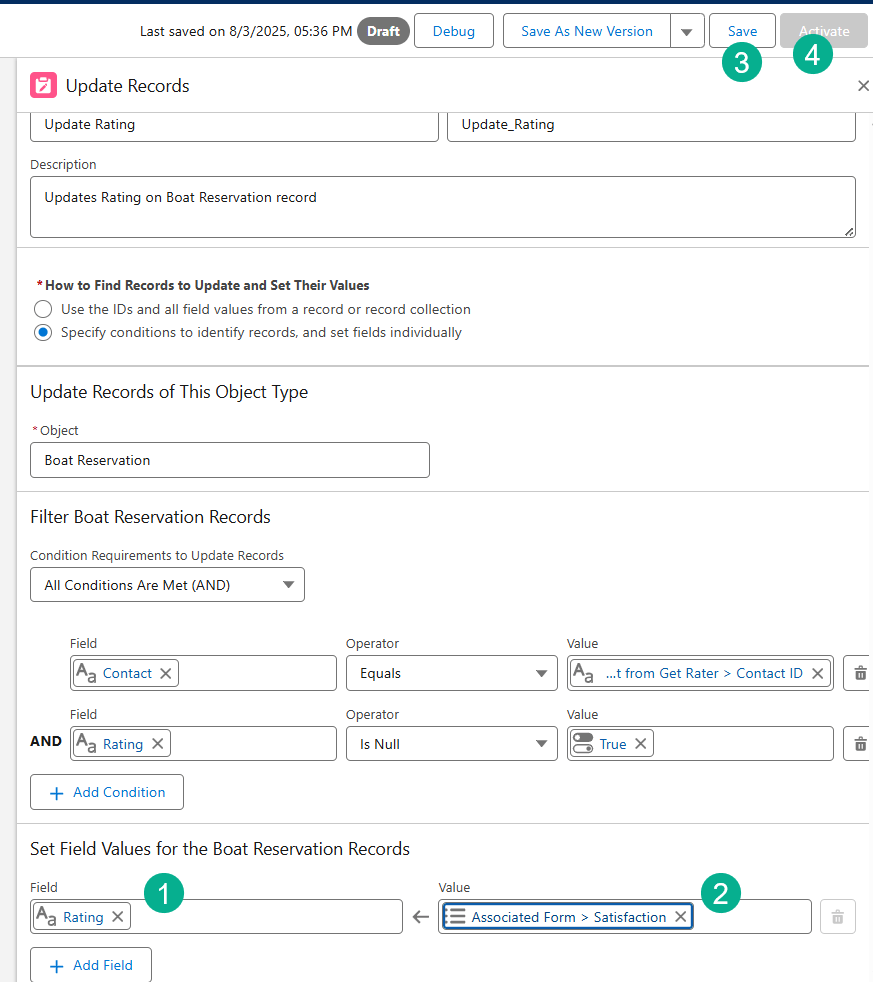 Step V: Update the Satisfaction field on the Contact Record