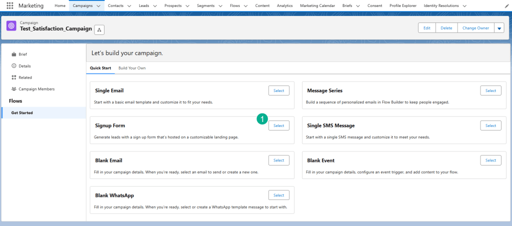 (1) Once the campaign is created select Signup Form.