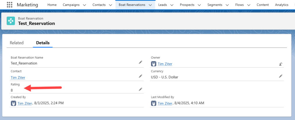 And when we refresh out Boat Rental record we see the rating populated.