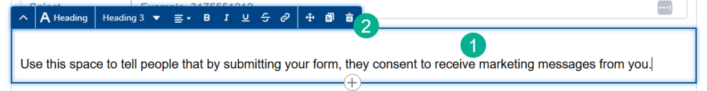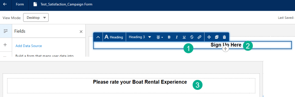 (1) Let’s click on the Heading block at the top of the form.