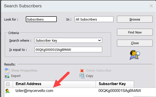 Let’s use the third subscriber in this list or the one where the subscriberkey ends in BMAW. This Subscriber has opted into receiving the Weekly Investment Tips. Now let’s say that after a few weeks they don’t want to receive these emails but still want to receive general emails from Cervello Bank.