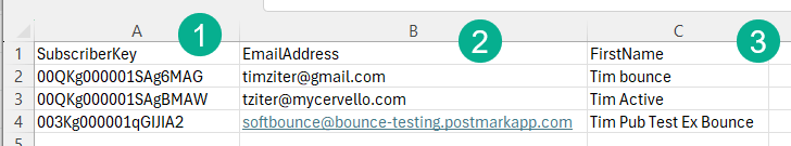 (1) We are going to create a Excel .csv and include fields to populate our subscriber like a SubscriberKey.
