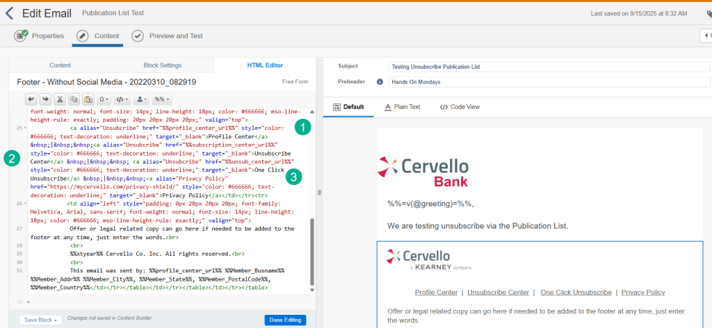 (3) You don’t have to modify the unsubscribe functionality in your email to only work for a Publication List. Once you select the Publication List at send it tells the unsubscribe functionality to unsubscribe from the Publication List only.