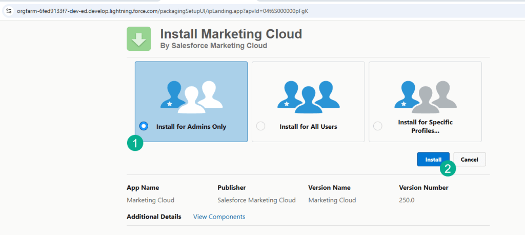 Part I: Install the Marketing Cloud Connector managed/Installed Package
