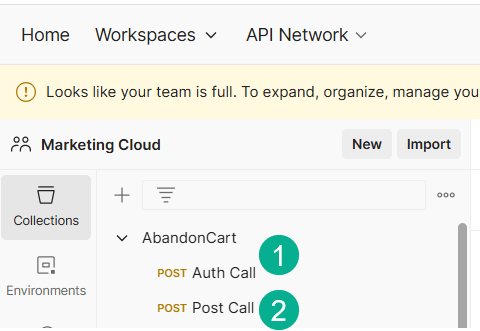 Once your collection is set up, create two requests: Auth Call and Post Call.