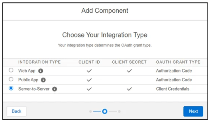 Select Server-to-Server as you’ll need both a Client ID and Secret for the API call plus client credentials.