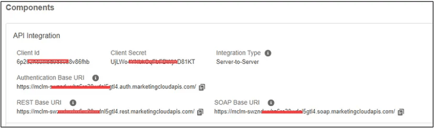 Once all the properties are selected, the Installed Package will be created with the Client ID and Secret plus the Auth and REST Base URIs. This information will be used in the next session: the Postman API setup.