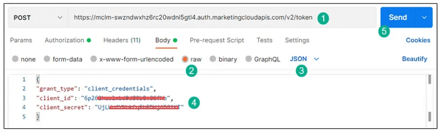 (1) Auth call is going to make the handshake between Postman and Marketing Cloud, opening up the connection.