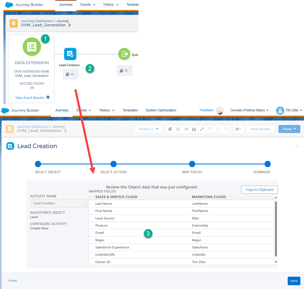 (2) With the Status of “Email 1 Ready” which will kick off a Journey in Marketing Cloud.