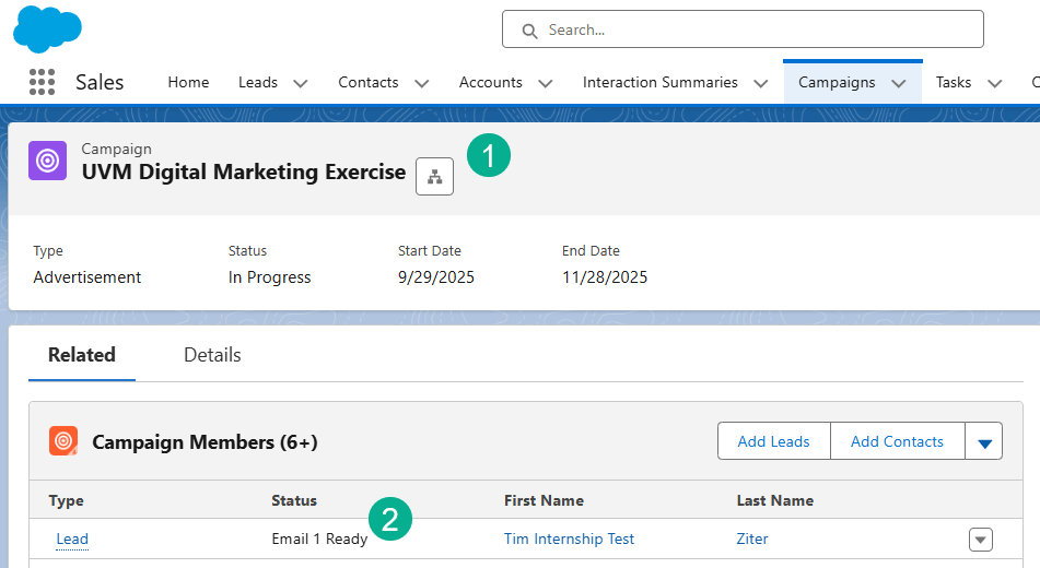 (1) Last step in Salesforce we create a Campaign for our marketing exercise and add each lead to the campaign.