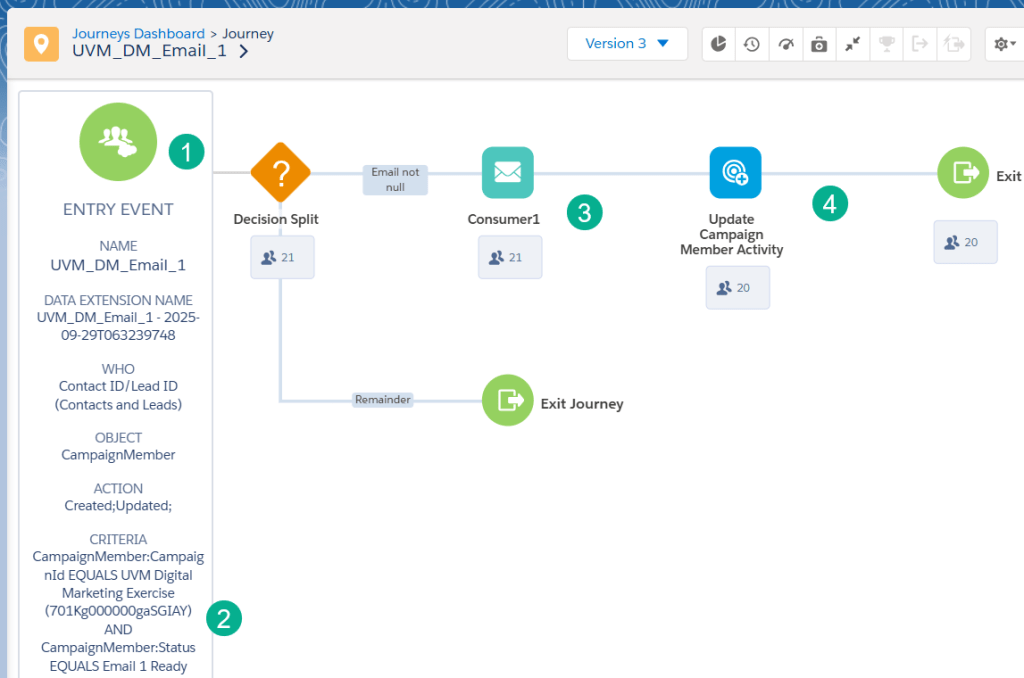 (1) The entry event of the Journey is a Salesforce Data Entry event.