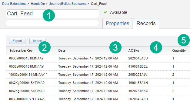 (1) Designate a data extension that contains the cart data.