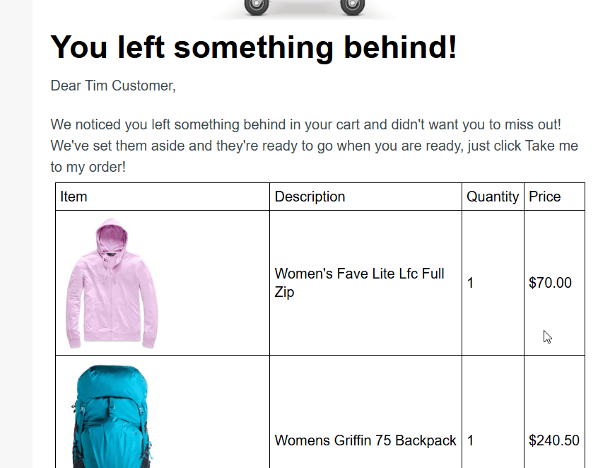 Let’s take a look at a typical abandon cart email that we will breakdown how to create in this blog: