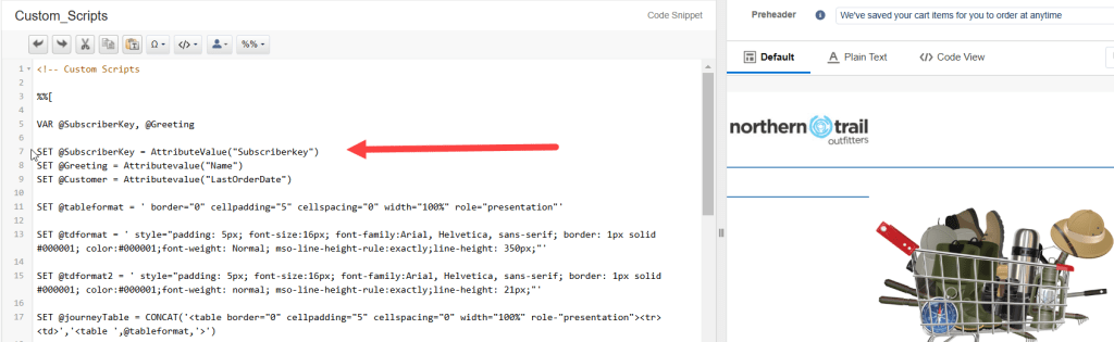4.) Create the Abandon Cart email that leverages the data extension data