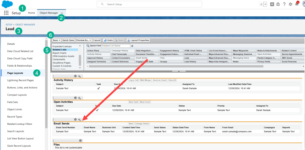 In this section we will configure page layouts to feature the key fields and related lists that hold the Marketing Cloud engagement data, specifically the Individual Email Results object. We’ll also create an API user in Salesforce to facilitate the connection.