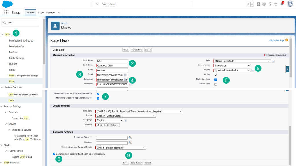 Next you’ll want to create a CRM API user who will be connecting to Marketing Cloud.
