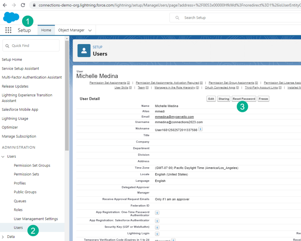 Before the team could start the Marketing Cloud connector setup everyone needed to gain access to the new org that was set up. Here’s a walk through of how to reset email passwords in the Salesforce CRM environment.