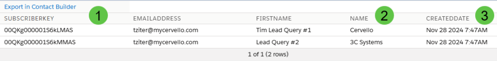 Use Case: Cervello needs to feed newly created leads into a Lead Nurture Journey. The Journey sends emails so the entry data extension will need a subscriber key and email address. The emails would also like to be personalized displaying the first name and company of the lead.