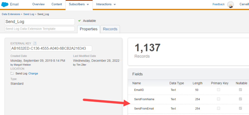 (2) Customize your Send Log by adding fields. Two that we recommend are SubscriberKey and EmailAddress. Follow their recommended data types and lengths.