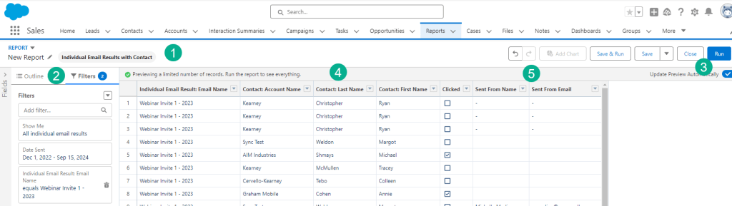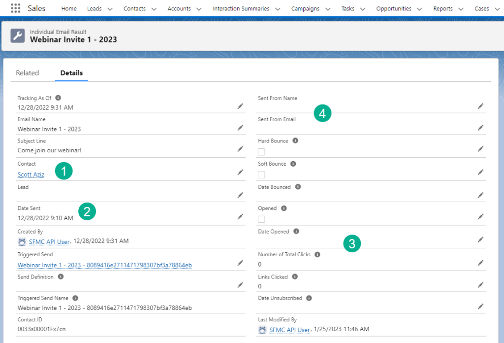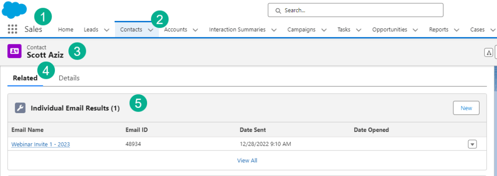 (4) The location of the Individual Email Results records can vary, in our example it’s under the Related tab.