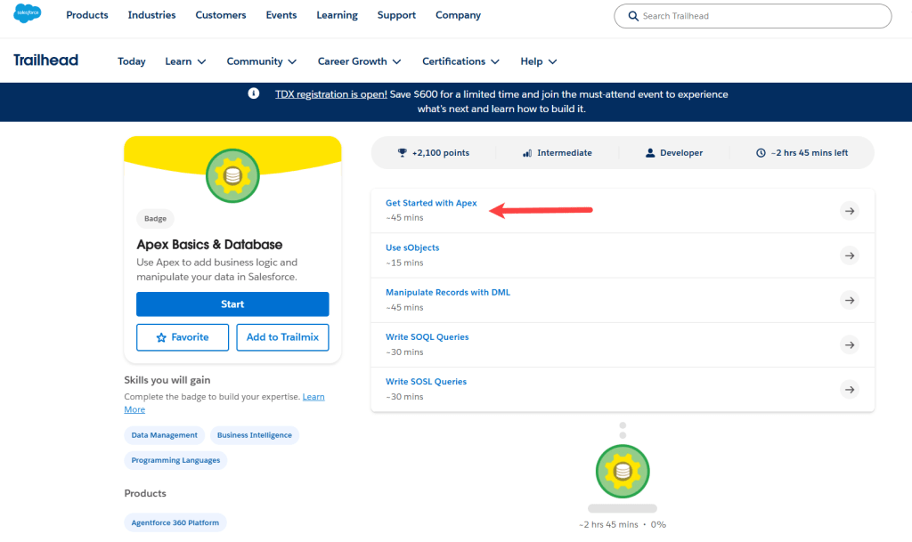Navigate to the following trailhead module: Salesforce Apex Logic & Data Manipulation