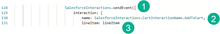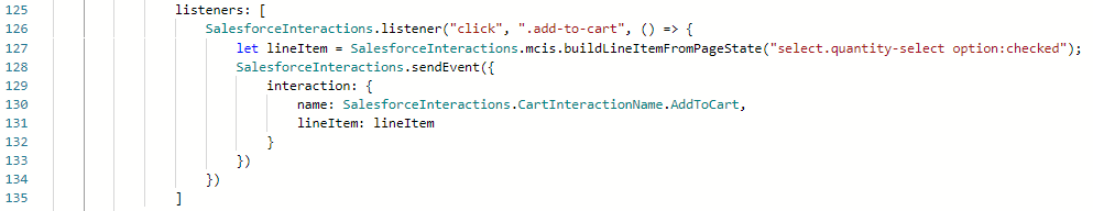 And lastly (1) this code sends the event to MCP with two items (2) a specific naming convention that will align with the affinity in the segment that this item was added to a cart and (3) the line item itself set above.