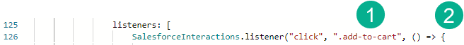 First step is to select what you are listing for, in this example it’s a “click” (1) and clicking on a specific area, the “add to cart” button on the page.
