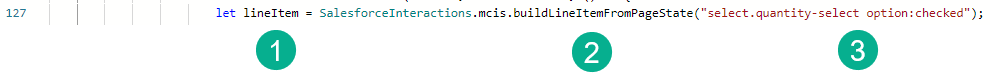 Next the code sets the line item (1) selected on the page using (2) code to select the item referring to (3) the item on the page.