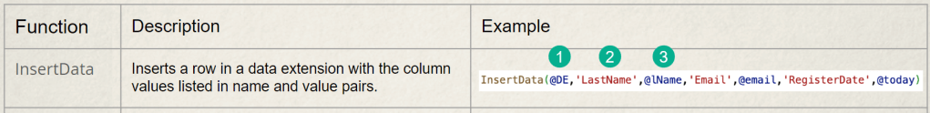 The InsertData function is very straightforward there are only two three data points needed to execute.
