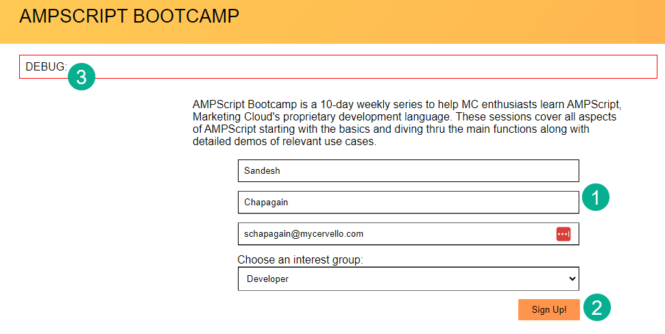 In this session the team continues highlighting essential areas of the Ampscript Bootcamp series hosted with the Phoenix Salesforce Marketing Group. In this session Sandesh utilizes the InsertData function adding data to a data extension via a cloud pages form. This is part of his Data Extension Ampscript Bootcamp featured below.