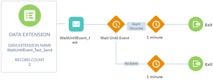 If you don’t already have a Journey with a Wait Until Event created, create a simple test journey with a test records in a data extension, an email with a call to action button or link to a cloud page and the Wait Until Event activity.