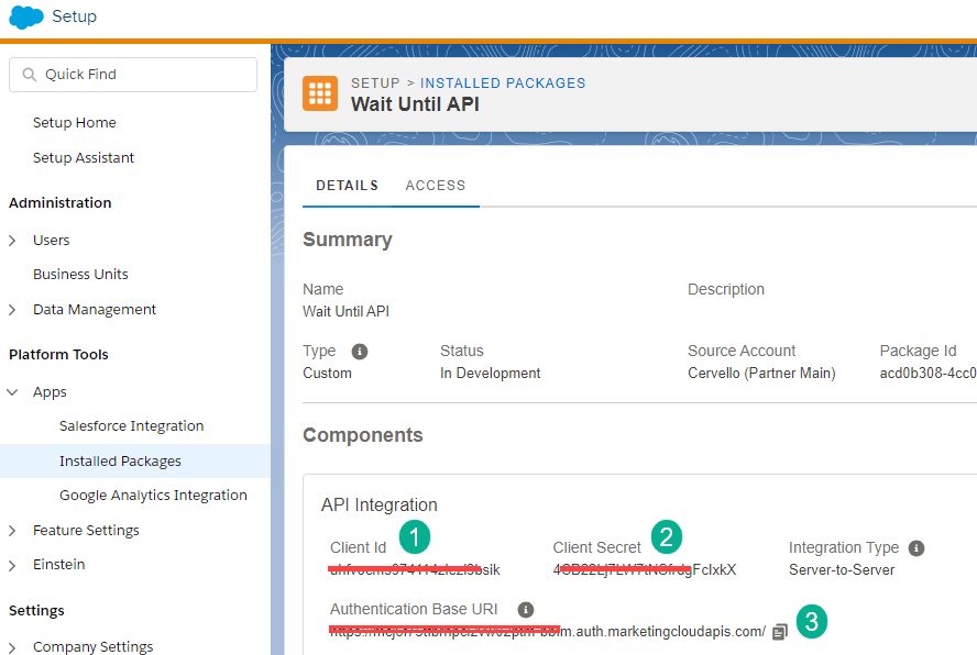 Before we outline the Postman request here’s a quick overview of the key data ponts needed from an Installed Package in Marketing Cloud: