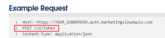 Now we need to add in the appropriate syntax for the URL found in the Auth documentation: https://developer.salesforce.com/docs/marketing/marketing-cloud/guide/access-token-s2s.html