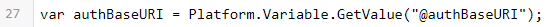We have brought over the Auth URL in the Ampscript code block above and need to convert the variable to SSJS. To convert the variable we’ll use the Platform function GetValue: https://developer.salesforce.com/docs/marketing/marketing-cloud/guide/ssjs_platformAMPscriptVariableGetValue.html