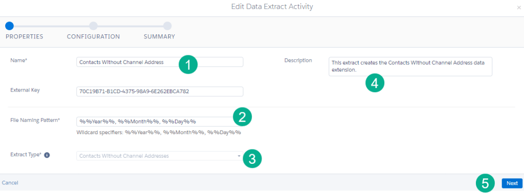 (3) Select the “Contacts Without Channel Address” Extract Type