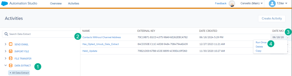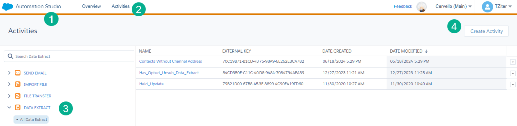 Under a general admin folder create a new Data Extract activity in Automation Studio.