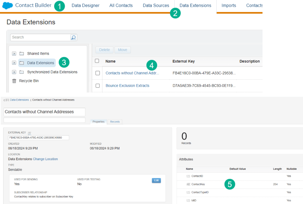 (5) Note the fields that are included in the data extension and click on the Records tab to view the contacts/leads.