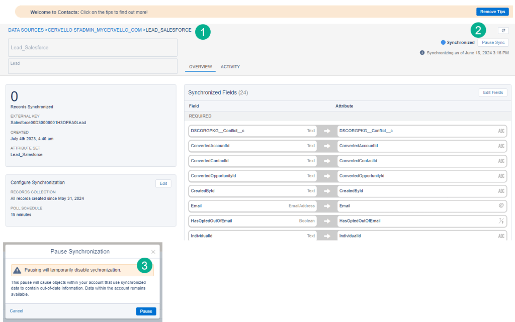 Step II: Pause the Contact, Lead and User synchronized data extensions