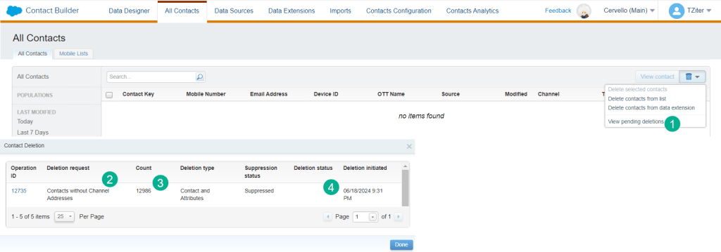 Step V: How to confirm contacts have been deleted in Marketing Cloud