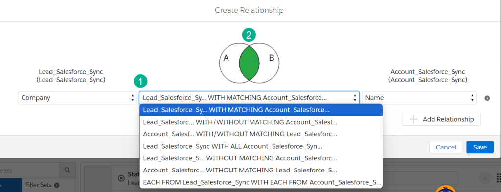 (2) Look at all of the data relationship options available, LEFT, RIGHT, OUTER Joins and more!