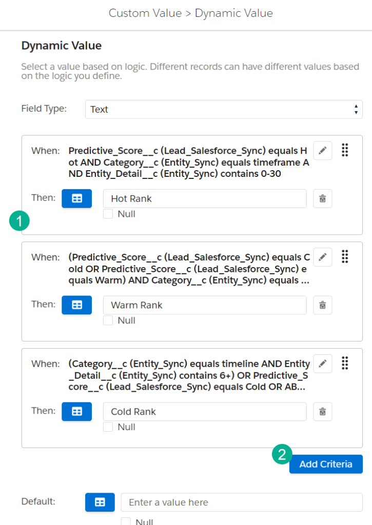 In our use case we needed to combine two different lead ranking systems in our DE Select solution. Using the Custom Values section under the Target Definition section we were able to combine not only those two rankings but also in a multitude of combinations.